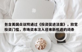 包含美国众议院通过《投资促进法案》,放宽投资门槛,市场资本注入迎来新机遇的词条
