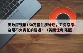 英政府强推150万套住房计划,工党怒斥:这是不负责任的冒进!(英国住房问题)