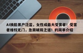 AI换脸黑产泛滥,女性成最大受害者!受害者维权无门,急需破局之道!的简单介绍