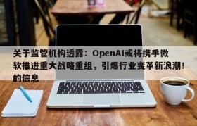 关于监管机构透露:OpenAI或将携手微软推进重大战略重组,引爆行业变革新浪潮!的信息