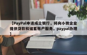 【PayPal申请成立银行,将向小微企业提供贷款和储蓄账户服务,paypal办理】