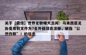 关于【震惊】世界足联曝大丑闻:马来西亚足协竟用假文件为7名外籍球员注册,被指“公然作弊”!的信息