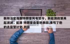 联邦法官推翻特朗普风电禁令,新能源政策再起波澜,能源 特朗普自豪地表示,多亏了他的去监管计划,到目