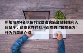新加坡对4名以色列定居者实施金融制裁和入境禁令,谴责其在约旦河西岸的“极端暴力”行为的简单介绍