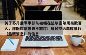 关于苏丹准军事部队被曝在达尔富尔屠杀数百人,连医院病患也不放过!居民控诉血腥暴行(最新消息)的信息
