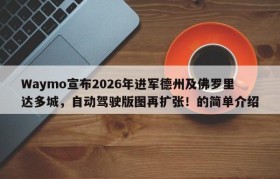 Waymo宣布2026年进军德州及佛罗里达多城,自动驾驶版图再扩张!的简单介绍