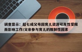 调查显示:超七成父母因育儿资源可及性受限而影响工作/父亲参与育儿的限制性因素