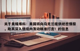 关于美媒爆料:美国将向乌克兰提供绝密情报,助其深入俄境内发动精准打击!的信息