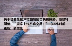 关于巴西总统卢拉强硬回击关税威胁,怒怼特朗普:“国家主权不容交易!”(18小时前更新)的信息