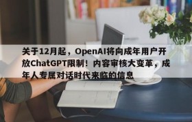 关于12月起,OpenAI将向成年用户开放ChatGPT限制!内容审核大变革,成年人专属对话时代来临的信息