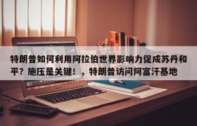 特朗普如何利用阿拉伯世界影响力促成苏丹和平?施压是关键!,特朗普访问阿富汗基地