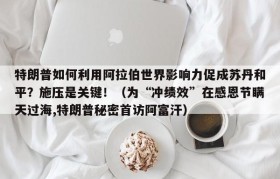 特朗普如何利用阿拉伯世界影响力促成苏丹和平?施压是关键!/为“冲绩效”在感恩节瞒天过海,特朗普秘密首访阿富汗