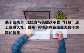关于奈杰尔·法拉奇与英国改革党“打包”送上三份大礼,凯米·巴德诺克新添三大棘手难题的信息