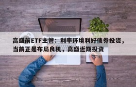 高盛前ETF主管:利率环境利好债券投资,当前正是布局良机,高盛近期投资