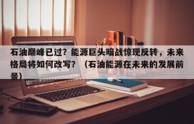 石油巅峰已过?能源巨头暗战惊现反转,未来格局将如何改写?(石油能源在未来的发展前景)