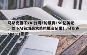 马斯克旗下xAI公司E轮融资150亿美元,创下AI领域最大单轮融资纪录!/马斯克spacex融资