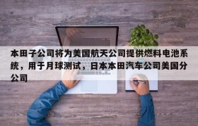 本田子公司将为美国航天公司提供燃料电池系统,用于月球测试,日本本田汽车公司美国分公司