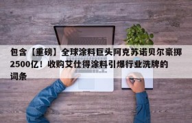 【重磅】全球涂料巨头阿克苏诺贝尔豪掷2500亿!收购艾仕得涂料引爆行业洗牌的简单介绍