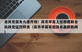 【自民党盟友火速开炮!高市早苗上任即遭联合执政党猛烈抨击,高市早苗家庭背景最新新闻】