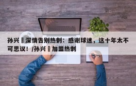 孙兴慜深情告别热刺:感谢球迷,这十年太不可思议!/孙兴慜加盟热刺