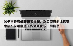 关于常春藤最新研究揭秘:涨工资真能让你更幸福?但别指望工作会变快乐!的信息