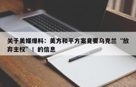 关于美媒爆料:美方和平方案竟要乌克兰“放弃主权”!的信息