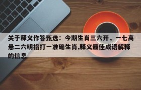 关于释义作答甄选:今期生肖三六开,一七高悬二六明指打一准确生肖,释义最佳成语解释的信息