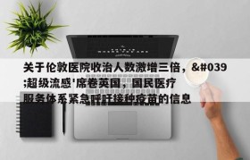关于伦敦医院收治人数激增三倍,'超级流感'席卷英国,国民医疗服务体系紧急呼吁接种疫苗的信息