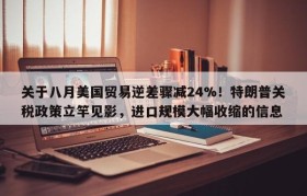 关于八月美国贸易逆差骤减24%!特朗普关税政策立竿见影,进口规模大幅收缩的信息