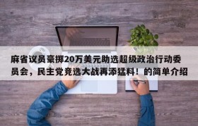 麻省议员豪掷20万美元助选超级政治行动委员会,民主党竞选大战再添猛料!的简单介绍