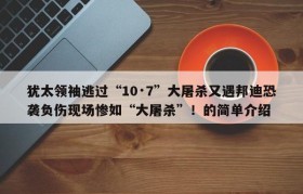犹太领袖逃过“10·7”大屠杀又遇邦迪恐袭负伤现场惨如“大屠杀”!的简单介绍