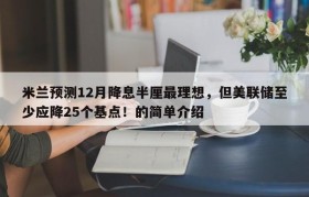 米兰预测12月降息半厘最理想,但美联储至少应降25个基点!的简单介绍