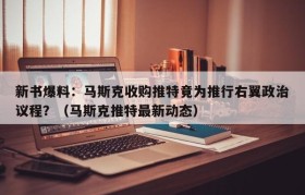 新书爆料:马斯克收购推特竟为推行右翼政治议程?(马斯克推特最新动态)