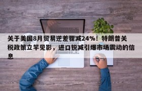 关于美国8月贸易逆差骤减24%!特朗普关税政策立竿见影,进口锐减引爆市场震动的信息