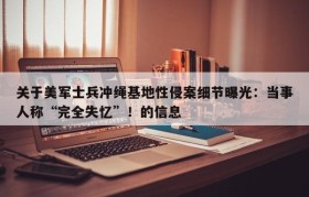 事发半年后,冲绳检方披露驻日美军恶行:士兵被控性侵女性 据日本共同社报道美军士兵冲绳基地性侵案细节曝...