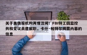 关于美情报机构再爆丑闻!FBI特工因监控共和党议员遭解职,卡什·帕特尔揭露内幕的信息