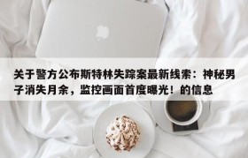 关于警方公布斯特林失踪案最新线索:神秘男子消失月余,监控画面首度曝光!的信息