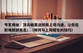 专家揭秘:顶尖精英这样和上司沟通,让你在职场脱颖而出!(如何与上司相处的技巧)