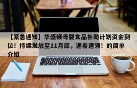 【紧急通知】华盛顿母婴食品补助计划资金到位!持续发放至11月底,速看速领!的简单介绍
