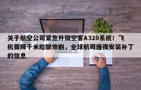 关于航空公司紧急升级空客A320系统!飞机骤降千米险酿惨剧,全球航司连夜安装补丁的信息