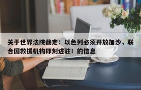 关于世界法院裁定:以色列必须开放加沙,联合国救援机构即刻进驻!的信息