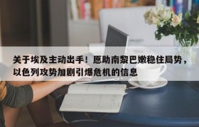 关于埃及主动出手!愿助南黎巴嫩稳住局势,以色列攻势加剧引爆危机的信息