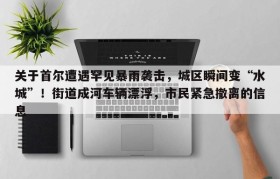 关于首尔遭遇罕见暴雨袭击,城区瞬间变“水城”!街道成河车辆漂浮,市民紧急撤离的信息