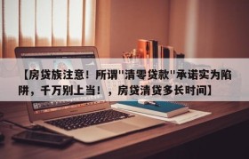 【房贷族注意!所谓"清零贷款"承诺实为陷阱,千万别上当!,房贷清贷多长时间】