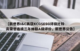 【新世界I&C再获KCGSESG评级比较高荣誉连续三年蝉联A级评价,新世界公告】
