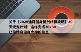 关于【2025迪拜健身挑战终极攻略】30天蜕变计划!这样完成30x30让你秒变健身大神的信息