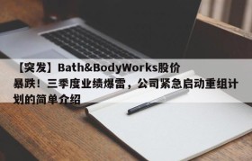 【突发】Bath&BodyWorks股价暴跌!三季度业绩爆雷,公司紧急启动重组计划的简单介绍