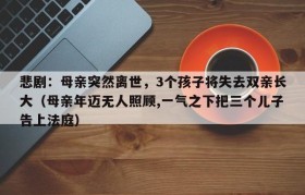 悲剧:母亲突然离世,3个孩子将失去双亲长大(母亲年迈无人照顾,一气之下把三个儿子告上法庭)
