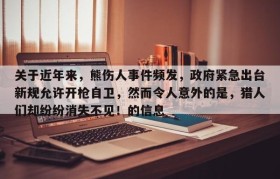 关于近年来,熊伤人事件频发,政府紧急出台新规允许开枪自卫,然而令人意外的是,猎人们却纷纷消失不见!的信息
