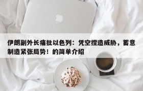 伊朗副外长痛批以色列:凭空捏造威胁,蓄意制造紧张局势!的简单介绍